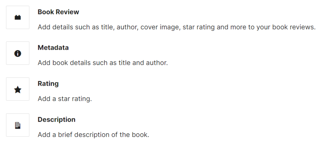 Book Review Block enables you to add details such as title, author, cover image, star rating and more to all of your book reviews. Book Review Block saves you valuable time when writing your reviews. No more copy and paste or manually entering the details of a book. Instead, you provide the ISBN, and the block automatically fills in information like title, author, and even the cover image. Book Review Block adds Schema markup to the HTML. This can help increase site traffic by ensuring your Google search results stand out from the rest.